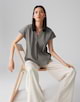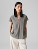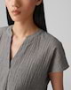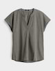 Die Shirtbluse aus nachhaltigem BCI Cotton Mix überzeugt mit geometrischer Crash-Optik. Der Rundhalsausschnitt läuft in der Front in einem kleinen V-Ausschnitt mit Faltenlegung aus.
