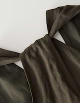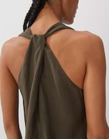 Das Maxikleid überrascht mit einer raffinierten Wickelung im Rücken, der eine Art Neckholder entstehen lässt und für einen Wow-Effekt sorgt.